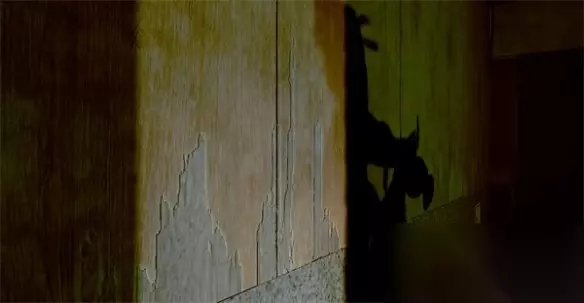 三个纸偶拿到后放到商议房间的纸板上,三人就开始了交谈,谈着谈着突然有声音出现,在仓库方向。
