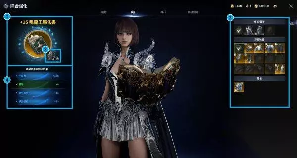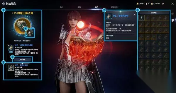 魔石/灵石刻印 ·可将魔石/灵石刻印至装备上 ·各装备上皆有各自预设的魔石/灵石字段,而魔石/灵石将根据装备上的字段数量赋予额外能力值 ·魔石/灵石主要可透过消灭怪物、达成成就奖励等方式获得 ·在尝试刻印魔石/灵石时,额外能力值的级别与数值将根据指定机率计算与决定 ·使用越高级别的魔石/灵石时,可获得越强大的额外能力值