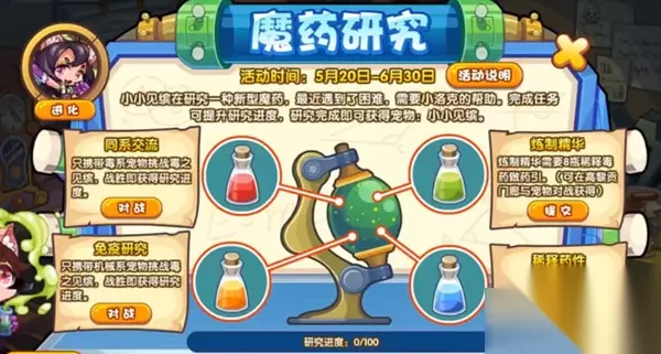 洛克王国魔药研究任务怎么完成呢?这个是在5.20举办的活动,很多的玩家不清楚这个任务怎么去完成,详细的活动说明为玩家们总结好了,注意需要在6.30让之前完成任务哦,里面的4小任务需要去一一的挑战完成,我们详细去看看怎么完成吧。