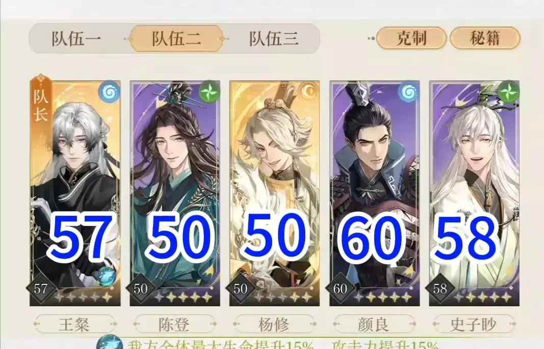 可以直接上,重点是控血,徐庶颜良九十级:练度再低一点也可以,徐庶谋无敌少剑气完美盘,颜爹攻击回血,修猫加二技能额外伤害加技能大幅,张邈道同加三风属性,登哥加一加…