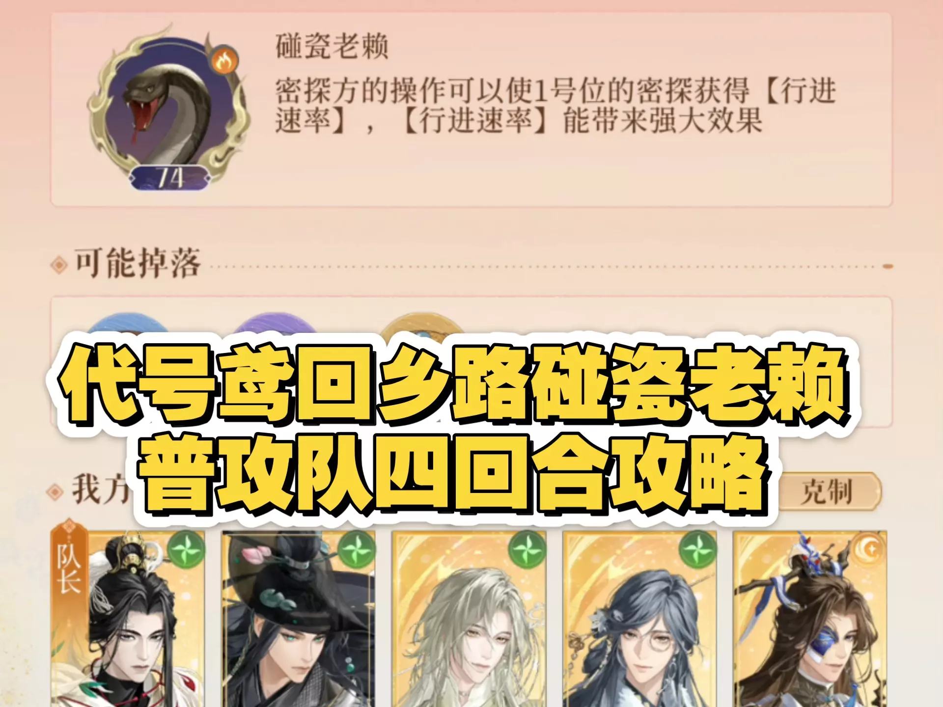 这是一篇《代号鸢》的低练度通关参考内容,分享了“碰瓷老赖”关卡的纯手工过关打法,无机制讲解,主打简单粗暴过关,还展示了战斗过程画面。