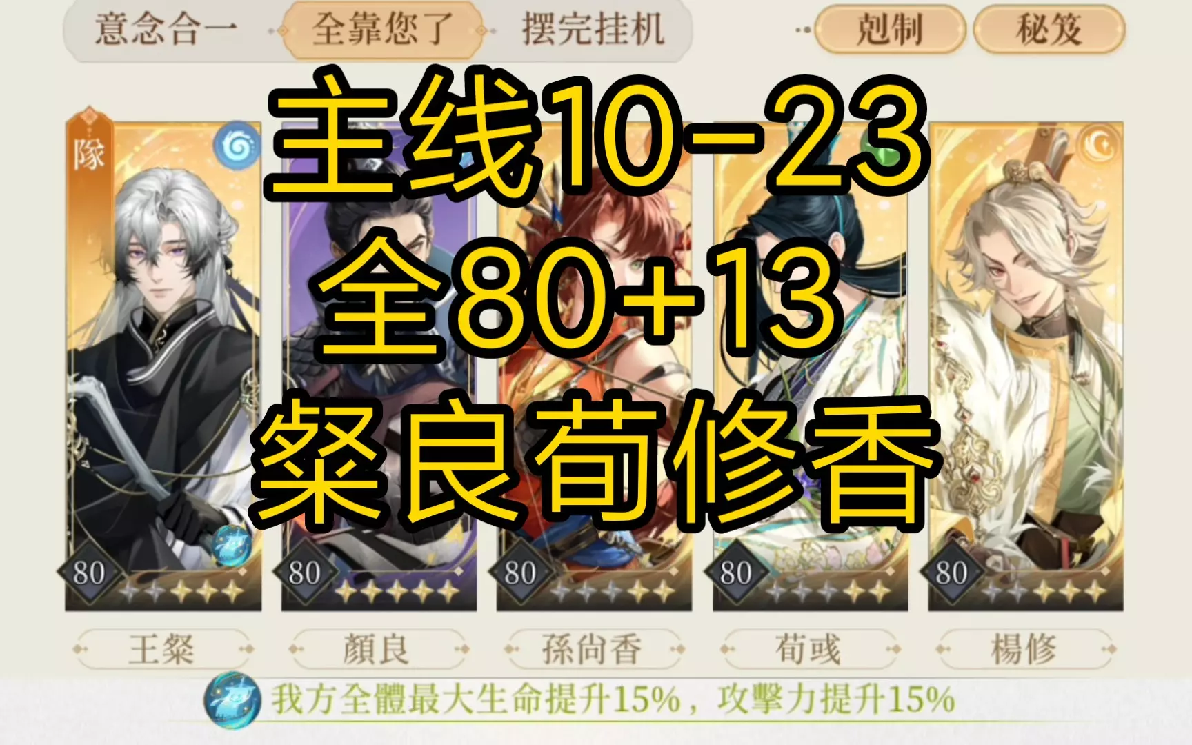 练度比较极限了,颜良觉醒非必需,面板比我高就行 注意要点都写在视频里了 王粲 三星 20400 5056 颜良 觉醒 40517 3196 荀彧 二星 2490…