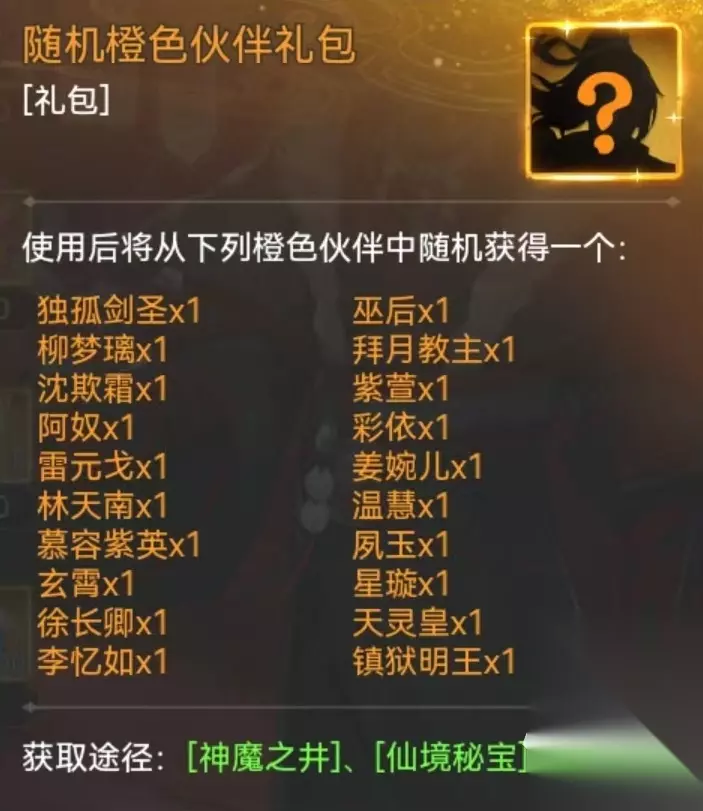 在这里抽取所需要的通灵符,大多数都可以通过江湖密令活动获得,但是在前期时候会有大量开服活动提供给大家,完成这些活动能够获得海量召唤道具。这也是其实前期并不缺角色的重要原因,所以完全不用消耗宝贵的灵玉在这里使用。例如7日登陆,7日目标和开服庆典等活动中都有大量赠送。神魔之井可以抽取到的伙伴包括橙色,紫色和蓝色,如果出现绿色将会自动分解掉。在抽取过程中还能够不断累积召唤次数,当召唤次数达到一定值的时候,有额外奖励赠送。例如达到50次赠送200灵玉,达到100次赠送5张通灵符,当达到200次的时候,将会赠送一个随机橙色伙伴礼包,里面可以开出很多强悍橙色角色,甚至拜月教主、剑圣这样的也有几率出。最佳选择当然是拜月教主,这也是众多玩家在这里纷纷抽取的原因。