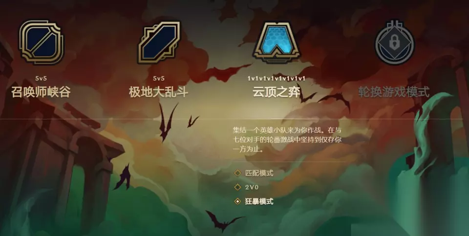 从字面上来说,暴力模式的本质在于“暴力”二字。与传统模式不同,暴力模式有几个最明显的特征: -健康从100降至20 -每回合被击败后,扣除的生命值点数是固定的,游戏越晚,扣除的生命值点数越多。 -购买体验选项已取消,仅保留刷新卡的选项 -取消了利息机制 -游戏节奏加快,更适合碎片化玩家 我们还在测试服里体验了几款游戏,发现这种模式的好玩之处在于玩家可以疯狂,而且因为每个人的初始血量只有20,所以每款游戏的平均时间都在20分钟左右(如果吃不到鸡,甚至会在10分钟内结束)。对于那些喜欢玩云顶游戏但是时间不多的玩家来说,这种模式无疑是直接命中。 然后让我们具体看看这个模型的一些亮点 模式入口在云顶的游戏模式,但目前还没有确定模式是否有时限。但从其特有的段位——暴力段位来看,这种模式应该是常驻模式。