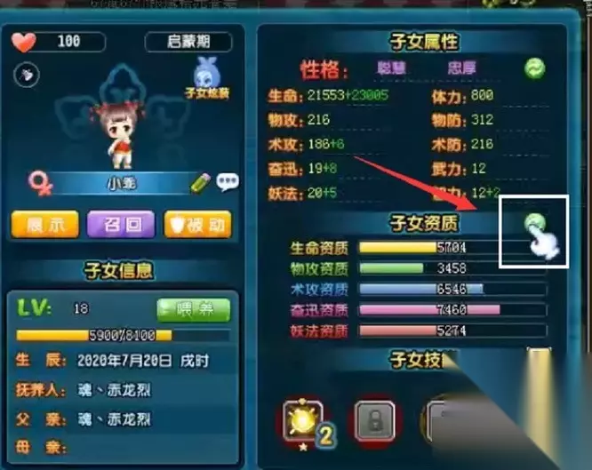 《qq三国》子女洗髓进度查看方法 子女洗髓进展在子女页面中查看。 用洗髓丹可对子女资质开展任意;每次任意所得资质限制总额为5W,下限值随洗髓进展而提升。 洗髓丹主要通过特殊活动期间特惠上架的商城豪礼产出,商城零售、青梅煮酒&云梦鬼谷产出的育儿豪礼中也将有产出。洗髓丹可交易,提议可向其他玩家回收。 查询流程: 1、点击游戏主界面右侧的”子女“系统。