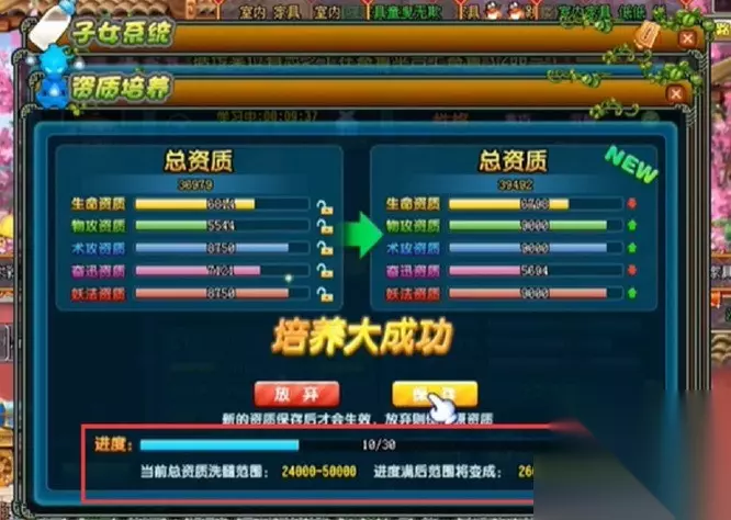 qq三国子女洗髓进度怎么看?子女洗髓进度在子女界面中查看,用洗髓丹可对子女资质进行随机;每次随机所得资质上限总值为5W,下限值随洗髓进度而提升,那么接下来就跟着小编一起来了解一下《qq三国》子女洗髓进度查看方法。