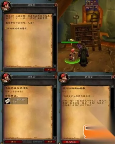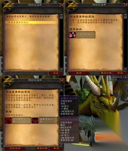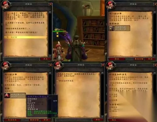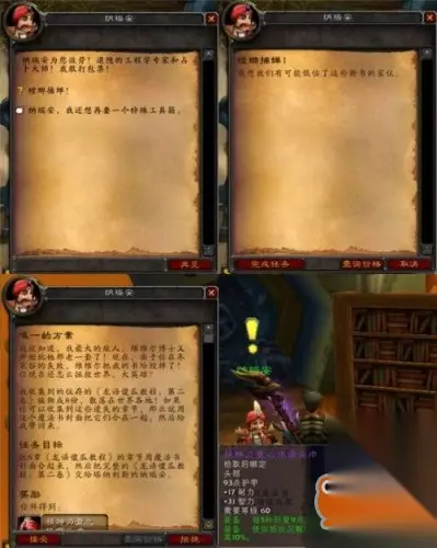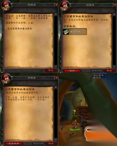 根据维维尔日记中记录的他所经之处,我们进行了地毯式的搜索。包括对腐烂之痕、暗语峡谷所有恶魔的逐个搜身得来的那2本;包括从拉格纳罗斯和奥妮克西亚手中明抢得来的那2本;还包括在暴风城图书馆、幽暗城书商那里和黑翼之巢炼金试验室中偷出来的3本(嗯~错了,是为了艾泽拉斯拿上这些书,窃书窃书,不能算偷……)。这样加上维维尔博士那里的第一章,我们总共八章教程终于收集齐了,用纳瑞安给的魔法书封面把这些部分装订成《龙语傻瓜教程-第二卷》,终于可以回去交差了。