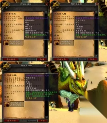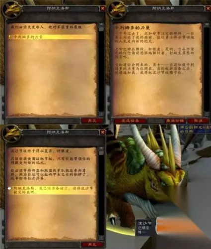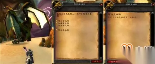 大家可能还记得塔纳利斯时光之穴那只打到20%血便会喊道“凡人,这还不是恰当的时机!”,然后会消失掉的青铜龙吧?没错,要找的就是他了,诺兹多姆的子嗣—阿纳克洛斯。这时青铜龙和我们的英雄还是仇恨状态,所以看到他并靠近些就可以完成任务了,然后再回到塞纳里奥议会找兽栏管理员汇报你的发现。