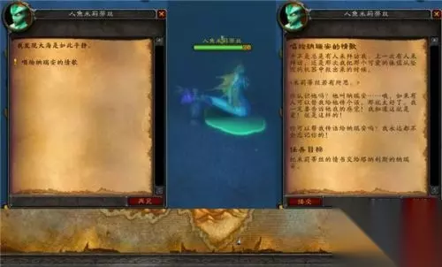 第四节 英雄一行人来到了塔纳利斯最南边的天涯海滩,放眼望去,难道纳瑞安指的是远在南海深海区那两座传说中的双岛么?大家正在苦恼如何渡过深海区时,我们的英雄突然发现了一个人鱼在唱着动听的歌曲。原来她曾经救过纳瑞安的命,并对他一见钟情。好吧,我们来替你传一次话吧。