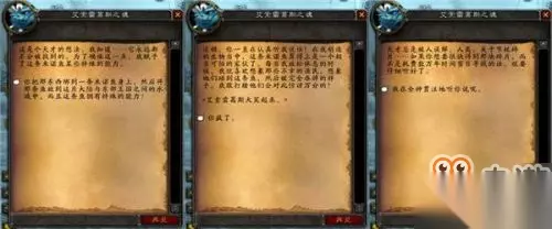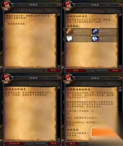 第五节 舍不得诱饵钓不到鱼 把教程交给纳瑞安后,他很佩服我们英雄的毅力并把自己的帽子送给了英雄。终于根据教程他看懂了魔法账本中的内容,但是坏消息是,制作这个奥金鱼漂,我们需要巨额的物资—20块奥金锭、10块源质矿石、10颗艾泽拉斯钻石、以及10颗蓝宝石。