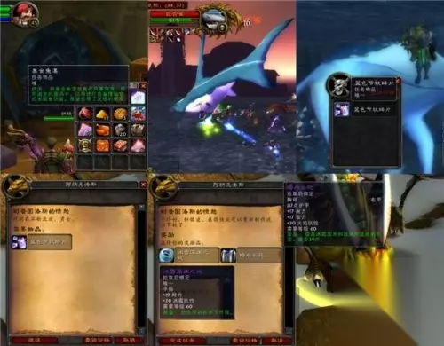 到了风暴海湾一个破船残骸附近,我们甩下奥金鱼漂,不久一条巨齿鲨缓缓地游来了。的确如蓝龙大哥所说,这条鲨鱼脾气暴躁,还不等我们开口交涉就一口扑来企图吃人。没办法,虽然这条鲨鱼活了这么多年实在不容易,为了他肚中的蓝色节杖碎片,我们也只好杀了他了。将蓝色节杖碎片后送还给阿纳克洛斯后他显得很兴奋,有慷慨的拿出两件收藏品让英雄选择一件拿去留念。现在,只剩下最后一块碎片了,让我们再加把劲。