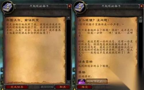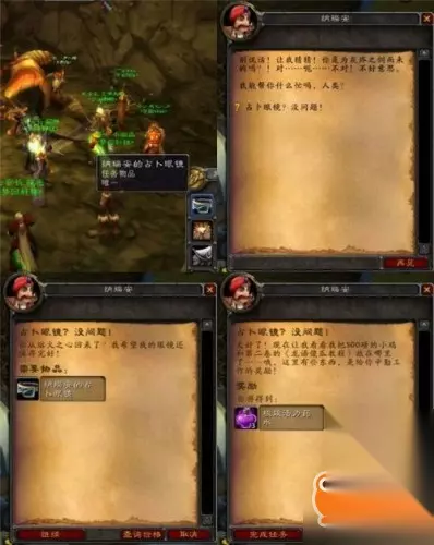第二节 纳瑞安的占卜镜 我们的英雄来到银松森林,在格雷迈恩之墙边上的一个箱子中找到了这个躲起来的侏儒。不过,事情果然没有这么顺利,这个家伙竟然把占卜眼镜掉在了熔火之心!看来只能再到那里跑一趟了。
