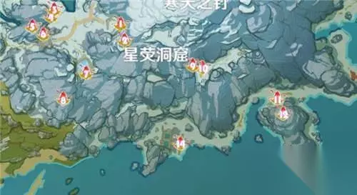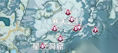 绯红玉髓点位详细解读:1.星荧洞窟内部上层的阶梯下(一开始记得开传送点以防摔死跑图)。 2.星荧洞窟内部最底层连接阶梯的石柱中间的缝里 3.星荧洞窟内部最底下挑战中获得的箱子内 4.星荧洞窟内部最底层湖面漂浮的冰块下(需要人站在上面两次踩碎获得) 5.星荧洞窟最上方阶梯下面 6.星荧洞窟窟字上方的山腰中间的地面上(洞穴顶部) 7.星荧洞窟墙体外的小山峰的山顶 8.#星荧洞窟荧字中间的小山洞尽头(需解锁寒天之钉)。 7、寒天之钉(13个):绯红玉髓点位详细解读: