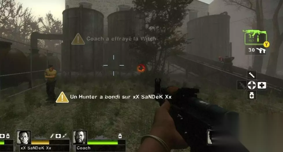 触发警报后,要立即沿着铁栏杆或左边的小路快速前进。途中会来到一个用木板搭成的台子,爬上台子的第二层,在尽头处可以找到并关闭警报器。关闭警报器后,对面的大门就会打开。在这段警报持续期间,会不断有僵尸涌来,建议团队保持队形快速移动,利用燃烧瓶或土制炸弹拖延尸群,不要恋战,目标是尽快抵达并关闭警报开关。