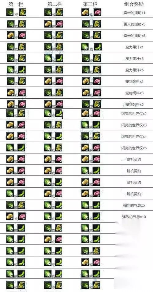 那么要怎么组合农作物才能合成出自己心仪的奖励呢?下面给大家一张组合奖励参考图:
