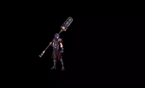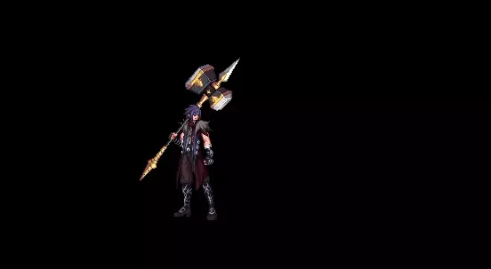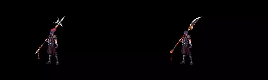 战戟 一种非常规的戟兵器,原本戟身的铁制部分被替换成了一个巨大的锤状物体,使得整个兵器看起来十分沉重。 想要拿起这样的戟,必须是身手不凡的名将。适合那些喜欢穿威猛霸气、硬朗风格的魔枪手。