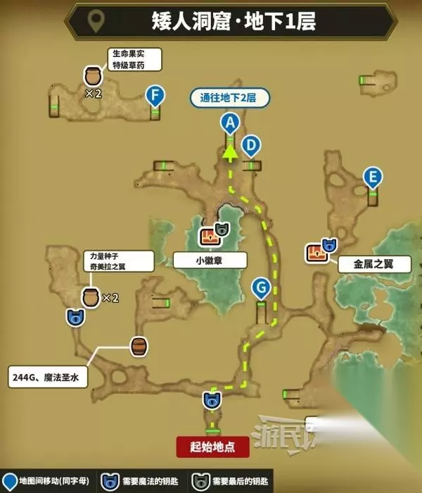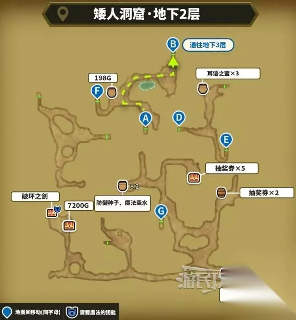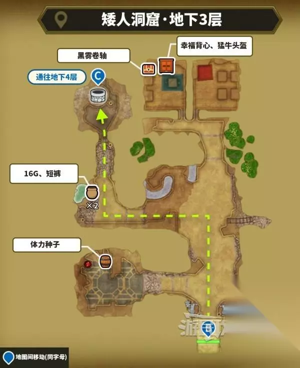 进入矮人洞窟后,从北边最深处的楼梯往下进入地下2层。