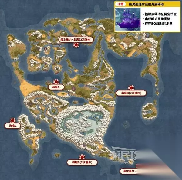 通关后着手收集7份世界回忆。与妖精城2层的历史妖精对话会显示【收集7份世界回忆】任务目标,所有回忆都在海底,需要使用船只潜水后收集。海主巢穴南海/北海有BOSS战,其他海底ABCD位置都不需要战斗。幽灵船上包含一段回忆,会环绕大陆的海底持续航行,航线是固定的,只需提前在特定地点等待即可,具体航行点位请参考这篇攻略。