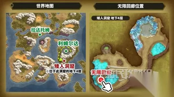 无限回廊前往路线及推荐等级 无限回廊在通关主线并集齐7份世界回忆后,即可从矮人洞窟地下4层进入,推荐探索和挑战等级为Lv60。无限回廊总共有26个区域,可探索范围非常大,建议务必做好充分准备之后再前往挑战(包括但不限于提升等级、准备恢复道具等)。