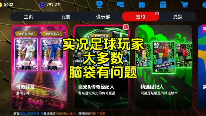 这是一则实况足球手游的游戏实况,展示了玩家处于出货期的抽卡、签约球员等游戏内容,还呈现了俱乐部经营、球员培养等游戏环节,包含克里斯蒂亚诺·罗纳尔多等球员的相关游戏操作。