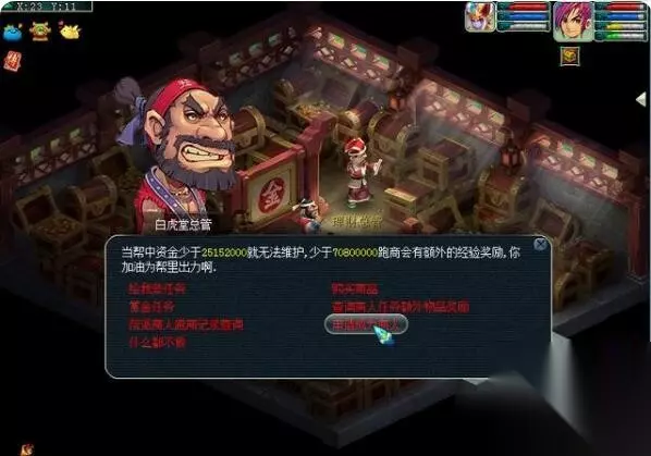 玄武堂的任务则呈现两极分化的特点,战斗任务要求玩家攻击敌对帮派的NPC或成员,战斗难度较高但帮贡回报丰厚。而内政任务如巡逻、训练守护兽等则相对轻松,适合等级较低或时间碎片化的休闲玩家,只是帮贡收益会略逊一筹。厢房任务作为帮派基础任务,堪称新手玩家的帮贡启蒙课。这类任务包含找人对话、简单战斗和收集少量物品等环节,战斗中的怪物强度较低,即使是刚入帮的新手也能轻松应对。虽然每轮任务只能获得约100帮贡,但胜在耗时短、无成本消耗,非常适合想要快速熟悉帮派系统的玩家。 而跑商任务则是帮贡与收益双收的经典玩法,玩家从帮派领取商票后,需要在长安、长寿、傲来等场景间低买高卖商品,通过赚取差价完成交票。根据交票金额不同,每次跑商通常能获得300-500帮贡,同时还能收获经验和游戏币奖励,不过这需要玩家熟悉各场景的商品物价波动规律,建议优先掌握长安、长寿的跑商路线。