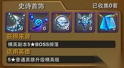史诗首饰 游戏中5星紫卡英雄获得途径较快的是通过任务奖励,另一种方法是刷副本得到,概率比较低。此套装备在精英副本5中才有掉落,想刷这个副本必须要有强大的英雄团队,这是后期英雄必备套装,也是刷蓝巨龙副本的英雄必备。
