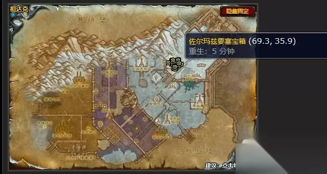 任务目标:夺取12只佐尔玛兹要塞宝箱 来源:魔化蒂基面具战士;佐尔玛兹要塞宝箱 位置图: