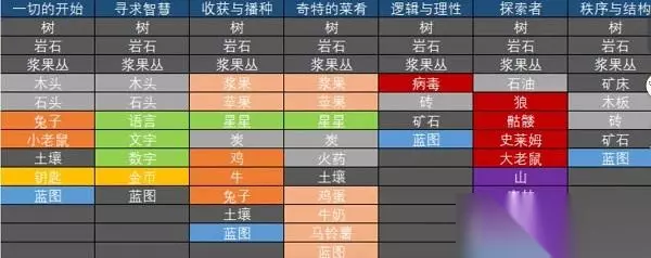 堆叠大陆攻略大全 下载入口:堆叠大陆 消灭恶魔 飞向宇宙 永生遐想 星辰大海 堆叠修仙 无尽黑暗 热门问题: 尸体介绍 农场作用 棚子作用 村民回血 旅行马车 科学家 星星 石斧 铁棒 金币箱 建筑作用 万有引力 金杯 砖厂 几何学 花园作用 在线入口 1、抖音:打开抖音在抖音搜索框中搜索“堆叠大陆”,找到之后点击即可在线玩。 2、闪玩:在闪玩中搜索“堆叠大陆”,就可以进行匹配,点击就可以。 3、摸摸鱼:前往摸摸鱼中进行搜索“堆叠大陆”,就可以找到,点击在线体验。 一、堆叠大陆第一关消灭恶魔 基础及武器合成表 树枝 1木头 鸡 鸡+鸡蛋 木板 3木头(手搓) 砖头 3石头(手搓) 矛 1木头+2树枝 剑 1铁棒+2树枝 低级建筑 合成 房子 2木头+1石头 伐木场 3木头+1石头 采石场 1木头+3石头 篝火 1树枝+1燧石 金币箱 2木头+1金币 棚子 1木头+1石头+2燧石 采矿场 1木头+1石头+1泥土 花园 2木头+2石头+1泥土 高级建筑 仓库 1铁棒+1石头 集市 1木板+1砖头+3金币 农场 2木板+2砖头+1泥土 冶炼厂 1木板+2砖头+2燧石 火炉 1铁棒+1砖头+1燧石 砖厂 1铁棒+1木头+1砖头 动物围栏 1铁棒+2木头+2木板 锯木厂 1铁棒+1木头+1木板+1石头 人员升级表 婴儿 2村民+房子 民兵 村民+矛 剑士 村民+剑 探索者 村民+地图 狗 狼+骨头 食物合成表 熟肉 1篝火 + 1生肉 煎蛋卷 1篝火 + 2蛋 奶昔 1牛奶+1浆果 水果沙拉 1苹果+1浆果 煎饼 1鸡蛋+1土豆 炖肉 1篝火+1土豆+1生肉+1洋葱+1胡萝卜 蛋卷 2蛋 鸡蛋饼 1土豆+1蛋 炖汤 1土豆+1生肉+1洋葱+1胡萝卜 二、建筑效果 建筑名称 作用 房子 将两个村民放进房子,可以获得婴儿;将两个尸体放进房间可以获得更多尸体。 花园 种植农作物,功能类似于复制器,产出的效率比土壤要快。 集市 获取金币的主要来源之一,可以让你出售的卡牌卖出更高的价格,不过速度比较慢。 金币箱 能够将金币进行存储,节省游戏的多余空间。 篝火 对生肉进行加工。 棚子 能够让玩家游戏卡牌的数量上限进行增加。 仓库 可以用来存放多余的食物,效果和金币箱类似。 农场 作用等同于高效率的土壤,获得植物类食物的效率特别高。 采石场 村民放到采石场上就可以获取石头。 砖厂 通过搬砖能够获取收益。 伐木场 村民在伐木场伐木就可以获取木头。 采矿场 村民在采矿场上可以获得一定数量的燧石。 冶炼厂 可以生产砖。 三、堆叠大陆第二关飞向宇宙 飞向宇宙合成表 木头/树枝/树皮/苹果 村民*1+树*1 石斧 树皮*1+石头*1+木头+1 工匠 村民*1+石斧*1 数字 村民*1+树枝*3 科学家 村民*1+语言*1+文字*1+数字*1 几何学 房子*1+数字*2+科学家*1 物理学 几何学*1+星星*1+科学家*1 万有引力 物理学*1+苹果*1+科学家*1 化学 矿石*1+文字*1+数字*1+科学家*1 铁锭/钛 冶炼厂*1+木头*1+矿石*1 炭 木头*1+篝火*1 钛合金 钛*2+炭*1+火炉*1 火药 炭*1+矿石*2 研究所 木板*3+砖头*3+铁锭*3+化学*1+科学家*1+工匠*2 钻井平台 铁锭*3+物理学*1+几何学*1+工匠*3 石油 钻井平台*1+土壤*1 燃烧剂 研究所*1+石油*3 火箭 燃烧剂*3+钛合金*3+铁锭*3+万有引力*1+科学家*3 乘火箭升空动画 火箭*1+n个在场所有人口 枪 火药*1+铁棒*2+研究所*1 枪手 枪*1+村民*1 第四章、堆叠大陆星辰大海 基础设施 蓝图-木屋 木屋=干木头x2、石头x1、漂流者x1 蓝图-晾晒架 晾晒架=湿木头x3、漂流者x1 蓝图-烤肉 烤肉=生肉x1、篝火x1 蓝图-鱼竿 鱼竿=木棍x1、鱼骨x1、绳子x1 蓝图-篝火 篝火=木棍x1、干木头x1 蓝图-仓库 仓库=石头x1、铁棒x1、塑料桶x2、漂流者x1 建筑 蓝图-锯木工坊 锯木工坊=干木头x2、石头x2、漂流者x1 蓝图-钓鱼台 钓鱼台=干木头x2、塑料桶x1、漂流者x1 蓝图-纺织机 纺织机=木板x2绳子x3、鱼骨x1、漂流者x1 蓝图-塑料加工厂 塑料加工厂=干木头x1、塑料x1、漂流者x1 蓝图-熔炉 熔炉=石头x3、木板x2、漂流者x1 蓝图-大炮 大炮=火药x3、铁棒x2、工匠x1 蓝图-龙骨 龙骨=干木头x5、工匠x1 蓝图-船帆 船帆=布x3、绳子x3、干木头x1、工匠x1 蓝图-船锚 船锚=铁棒x3、绳子x3、工匠x1 蓝图-甲板 甲板=木板x5、工匠x1 蓝图-海盗船 海盗船=龙骨x1、船帆x2、船锚x1、甲板x2、大炮x2、工匠x3 蓝图-金币箱 金币箱=金币x1、干木头x2 蓝图-棚子 棚子=塑料桶x1、干木头x1、石头x1、漂流者x1 烹饪 蓝图-鱼干 鱼干=鱼x1、晾晒架x1 蓝图-烤鱼 烤鱼=鱼x1、篝火x1 蓝图-鱼罐头 鱼罐头=鱼干x2、塑料桶x1 蓝图-鱼汤 鱼汤=鱼x1、海藻x1、篝火x1 蓝图-果汁 果汁=浆果x1、椰子x1 军事 蓝图-长矛 长矛=石头x1、木棍x2 蓝图-长剑 长剑=铁棒x1、木棍x2 蓝图-火枪 火枪=火药x1、铁棒x2、工匠x1 蓝图-铁锤 铁锤=铁棒x2、木棍x1 蓝图-渔夫 渔夫=鱼竿x1、漂流者x1 蓝图-水手 水手=长矛x1、漂流者x1 蓝图-勇士 勇士=长剑x1、漂流者x1 蓝图-火枪手 火枪手=火枪x1漂流者x1 蓝图-工匠 工匠=铁锤x1、漂流者x1 资源 蓝图-干木头 干木头=湿木头x1、晾晒架x1 蓝图-木棍 木棍=干木头x1、漂流者x1 蓝图-塑料桶 塑料桶=塑料x3、塑料加工厂x1 蓝图-纤维 纤维=藤条x1、漂流者x1 蓝图-绳子 绳子=藤条x3、漂流者x1 蓝图-布 布=纤维x5、纺织机x1 蓝图-碳 碳=干木头x1、篝火x1 蓝图-木板 木板=干木头x3、锯木工坊x1 蓝图-铁棒 铁棒=矿石x1、干木头x1、熔炉x1 蓝图-火药 火药=碳x1、矿石x2 第五章、堆叠修仙 飞升 配方-婴儿 婴儿=人类x2、极乐洞府x1 配方-凡人 凡人=婴儿x1、极乐洞府x1 配方-练气期 练气期=凡人x1、凝气丹x1 配方-筑基期 筑基期=练气期x1、筑