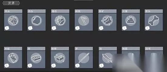 5、资源 包含:木头、石头、树枝、铁矿、骨头、木棍、砖块、铁棒、矛、剑、地图、旧书等,上方查看使用方法。