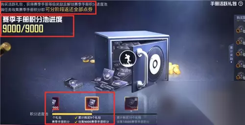 就这样1000点券其实可以一直循环,每买一个,然后在做任务,进度条满了,就会返还,然后再购买,再循环就行了,也就是说1000点券可以一直购买手册等级,最后都会把这个点券返还给你。 总而言之,活跃礼包的返还点券规则就是购买以后,解锁1000积分池,进度到了以后即可领取1000点券,非常简单。