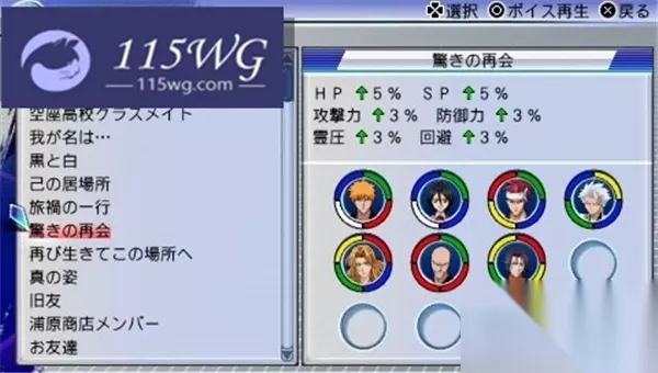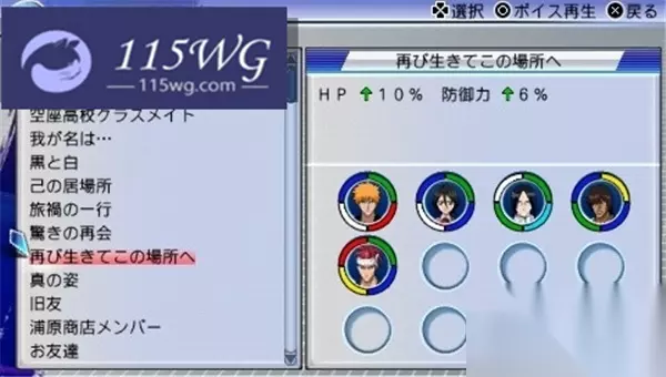 组合:黑崎一护、朽木露琪亚(义骸)、石田雨龙、茶渡泰虎、阿散井恋次 效果:HP上升10%;防御力上升6% 此组合侧重提升角色的生存能力,特别适合需要耐久的战斗,能够显著增加角色的生命值以及防御,使其在战斗中更为持久。 010