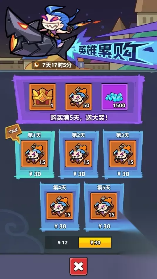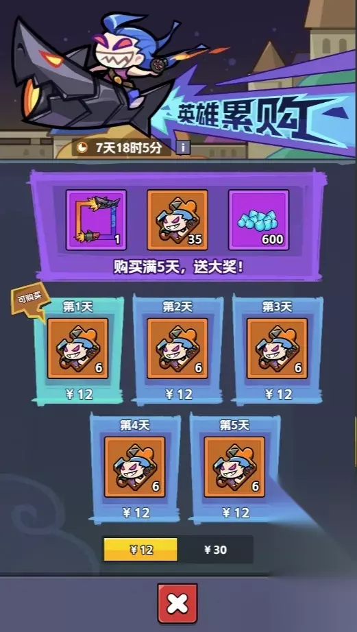 新英雄累购活动 这活动有两个档位,买满5天就能领奖励。 ※第一档位礼包 包含活动头像框、萝莉碎片35个、钻石600。
