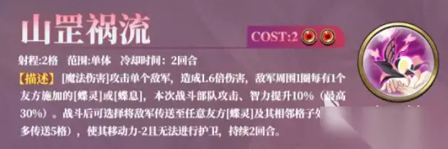 再来看看“山罡祸流”。这招就像是蝴姆巴巴在战场上的终极压制技能了。它不仅能对敌人造成高额魔法伤害,还能根据敌人附近是否有友军施加的“蝶息”或“蝶灵”来提升伤害和智力加成。战斗结束后,敌人还会被传送到你设定的友方“蝶灵”附近,这让敌人在攻击时根本无法摆脱被击杀的命运。不得不说,这个技能给敌人带来的麻烦完全不止一点点。