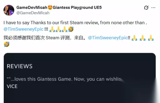此前,EPIC的CEO TIM Sweeney亲自评测转发了这款游戏,向广大粉丝推荐这款“性感大脚”题材的游戏;而外媒VICE也在测评游戏开发阶段的版本时表示,游戏画面表现非常好,破坏效果极佳,而且女巨人的想法也非常有趣。 此前报道的游戏画面>>>