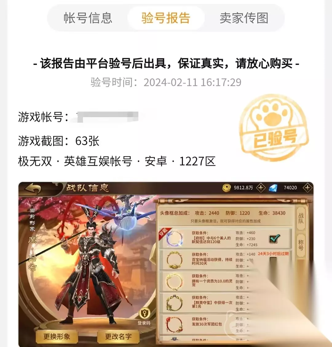 【交易猫】最新版下载 点击下载 游戏中不仅为玩家设立多个三国时期的著名武将角色,还将他们分为了仙、鬼、神、魔等多个类别的英雄角色,在技能上还有觉醒技能和非觉醒技能,让玩家体验用技能来竞技的游戏乐趣。在游戏过程中拥有多个闯过地图,每次闯关的队伍要求都是不一样的,如果说玩家的账号中拥有好的武将角色还能拥有觉醒技能,那在游戏中任何有难度的闯关都将会很容易。所以如果没有精力来养号的玩家可以选择上交易猫上直接购买精品号。