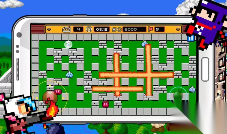 宇宙巡航机在FC时代也是首屈一指的飞行射击类游戏,很多90后玩家都对这款高难度飞行射击手游印象深刻,手机端移植后不仅操作简化而且画面更为细腻,自由控制宇宙巡航机在危机四伏的地图上射击冒险更有快感,游戏画面怀旧古老但整体耐玩性肯定不差,一起在浩瀚的宇宙中对抗形形色色的邪恶敌人吧。 手机扫码下载233乐园APP预约 预约订阅最新动态 优先233乐园APP下载 4、《炸弹人 2016》