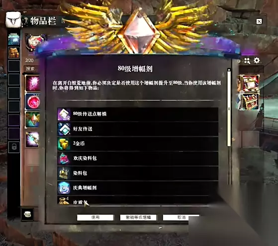 4、利用巨龙绝境dlc标准版赠送的“80级振幅剂”我们就可以直接升到80级,不过第一次是体验版,我们需要在背包里再用一次才能确定直升80级。