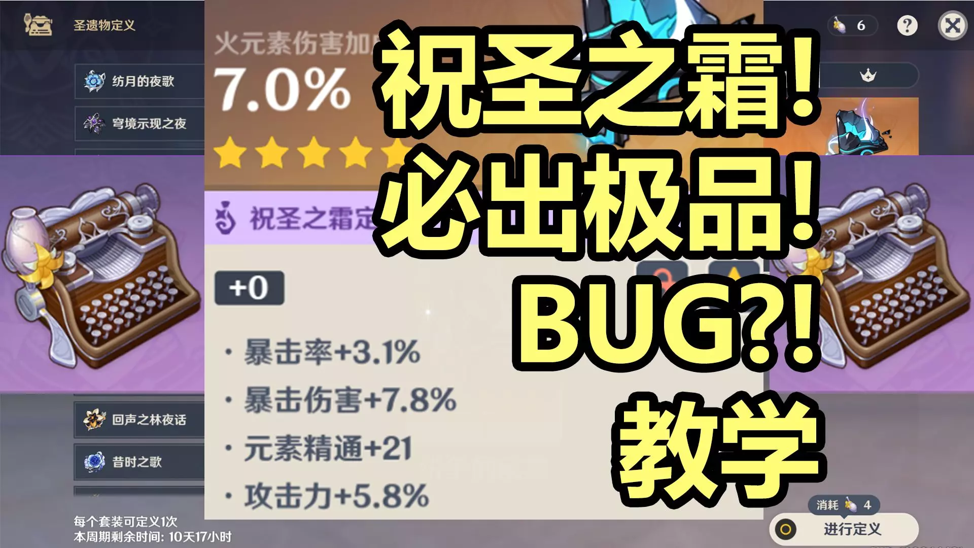 【原神】祝圣之霜必出极品方法!圣遗物 毕业 速通 原神月之六 强化 技巧 攻略 1强化技巧第1期:BV1bWUxBkEiW 2强化技巧第2期:BV1JMveBU…