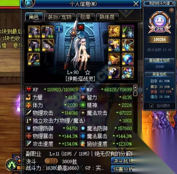 面板124620 提升9.3% 这是时光高三攻力智基础下的面板,如果是幽魂魔战万世这种低力智/三攻基础的套装,猴戏带来的加成会更高。 另外: