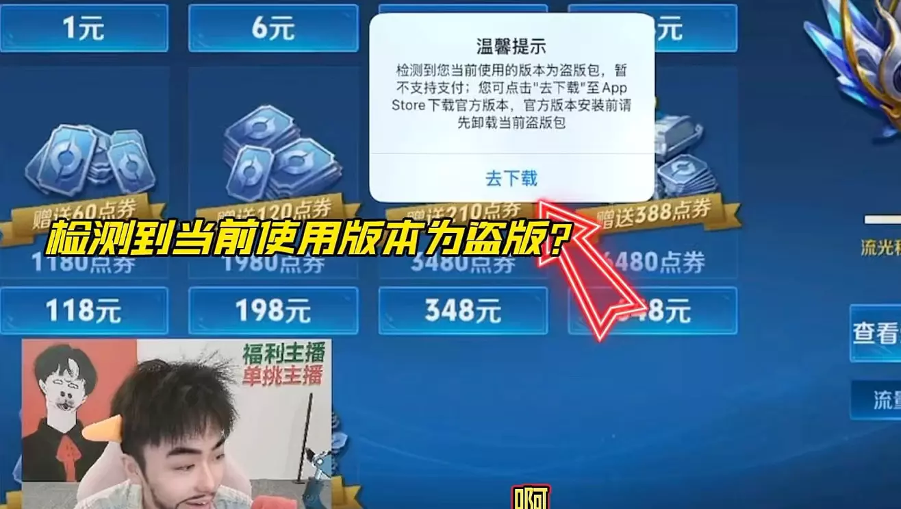 该内容是王者荣耀主播的游戏日常,主播参与无双祈愿抽奖,抽到已拥有的澜-孤猎皮肤后转化为20个道具,抽奖后表示想玩国际服,还展示了自己的英雄池,提及无双皮肤。
