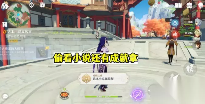 9.而尽人事 璃月有个名为【好兆头】的每日委托,需要我们找到好兆头后向NPC汇报,但“坏事做尽”的我们,偏要将它们全破坏了,当我们抓过鱼、打过鸽子、吹过落叶、赶过修狗之后,就解锁了该隐藏成就,注意一次只能干一件事,需要刷到至少4次该委托,才能达成成就。 10.这本小说真厉害