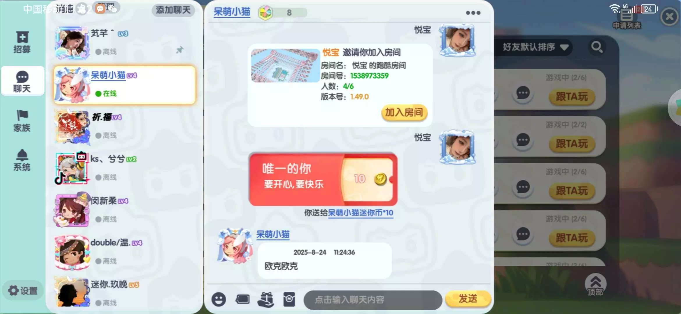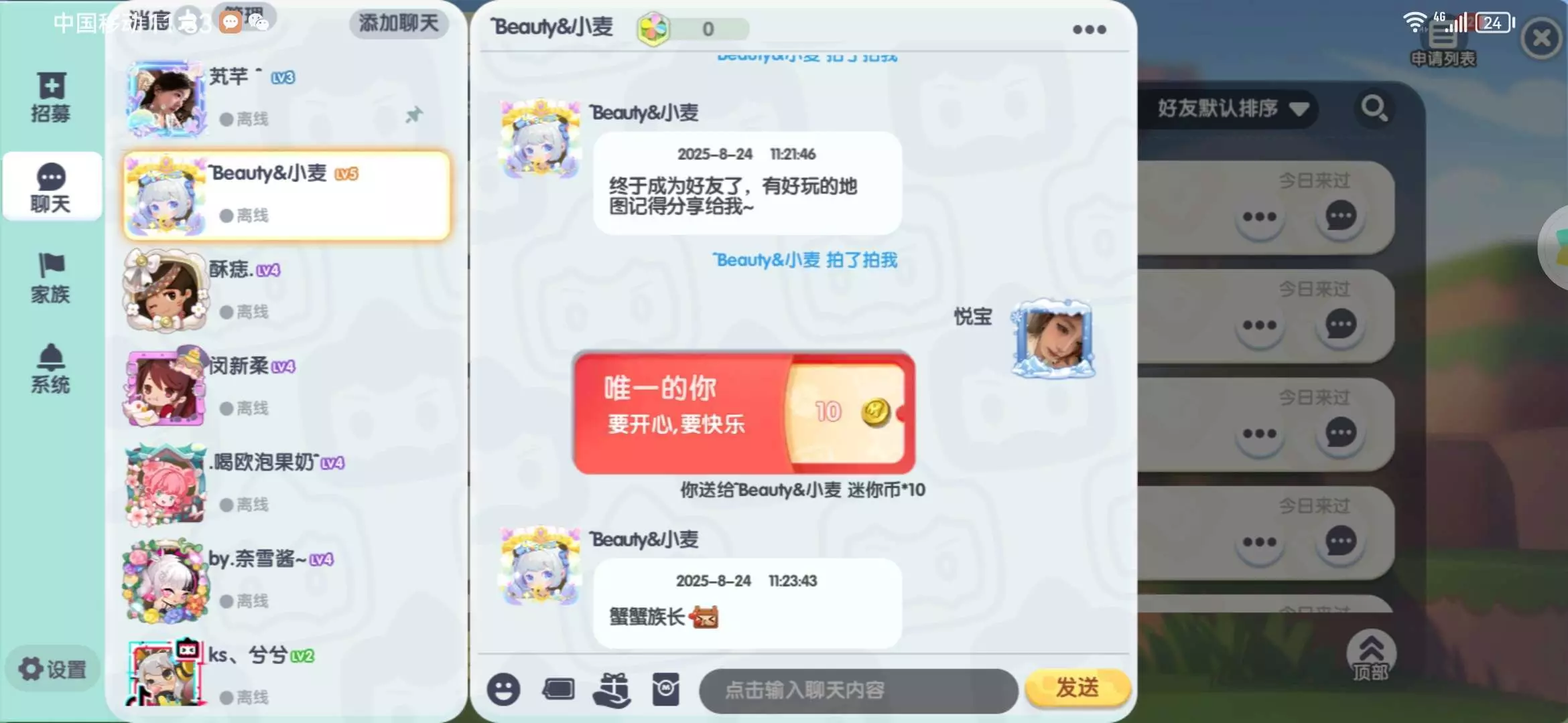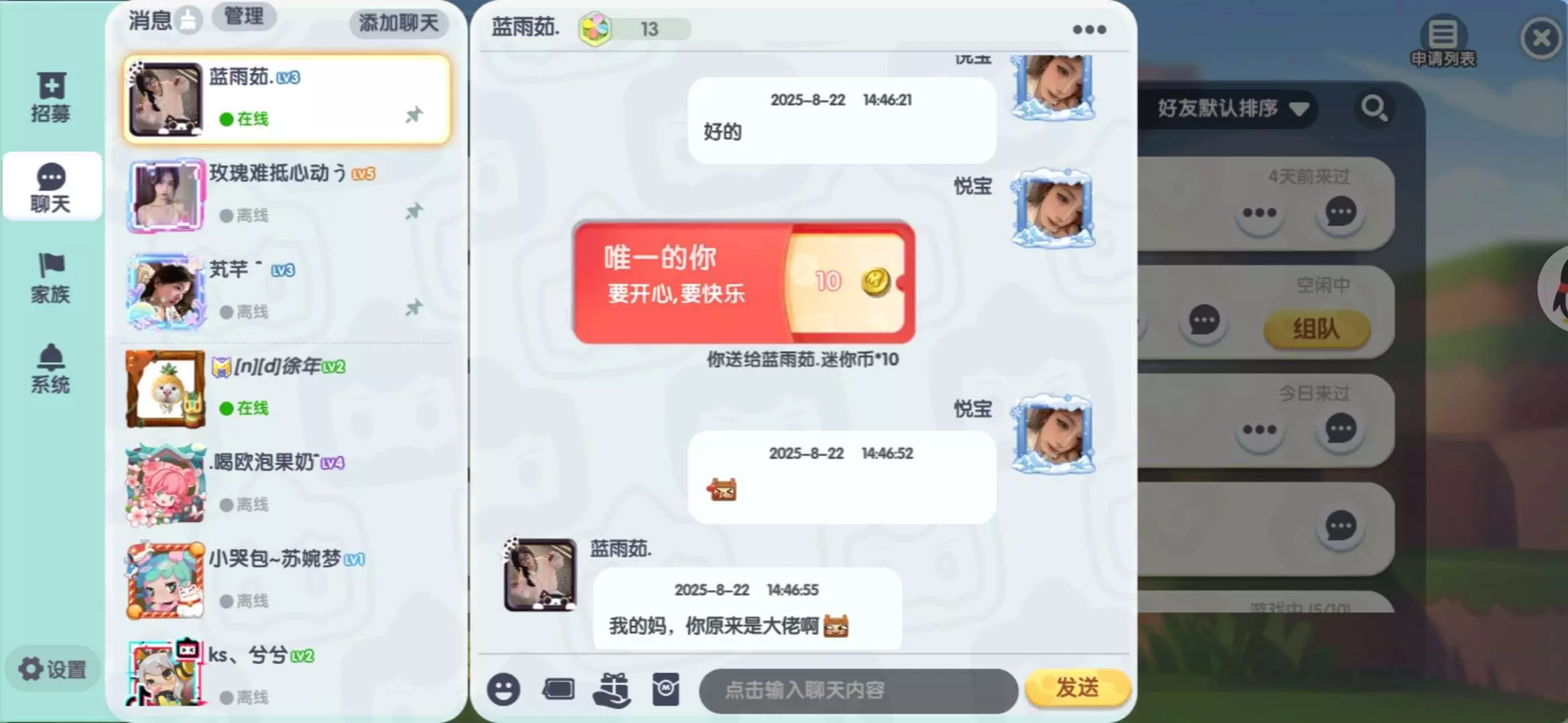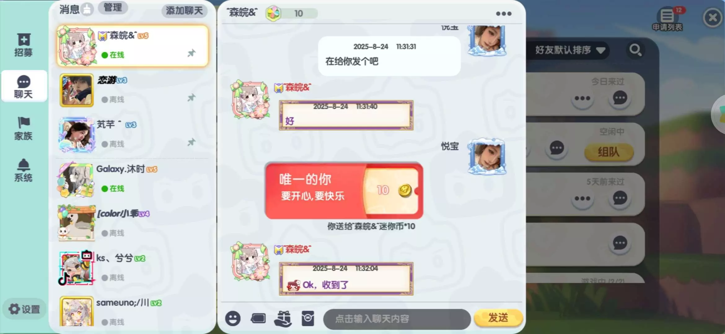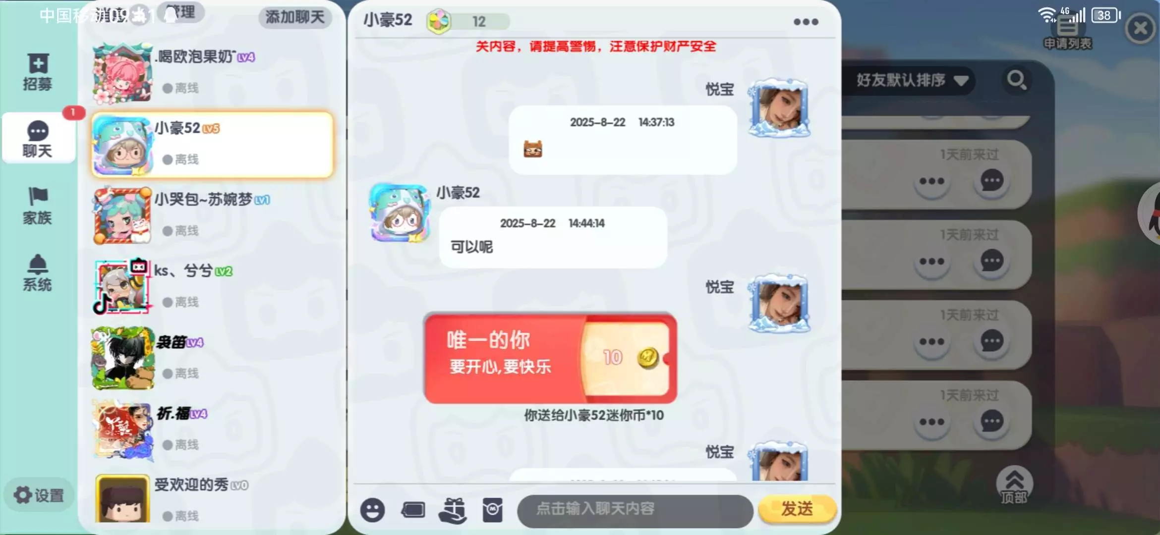 家族福利,关注我眼熟会送定制,而且我也会在家族不定时发红包。有兴趣关注一下