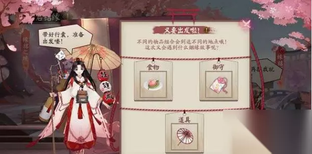 缘结历练活动玩法介绍 缘结历练介绍: 选好缘结神外出需要携带的物品,缘结神准备出发喽~ 每次缘结神外出返回后,都可获得一定的奖励。 当所携带的物品组成特殊组合后,可触发不同的故事。 阴阳师大人们在神社里面给我买非常非常厉害的道具啦!