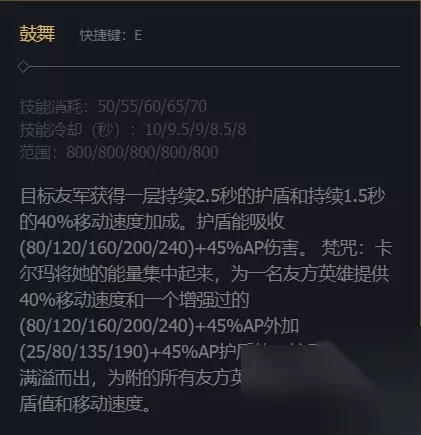 2、E技能是给队友套个盾,以及让队友获得移速加成,有焚咒的情况下,护盾和移速加成都会提升。