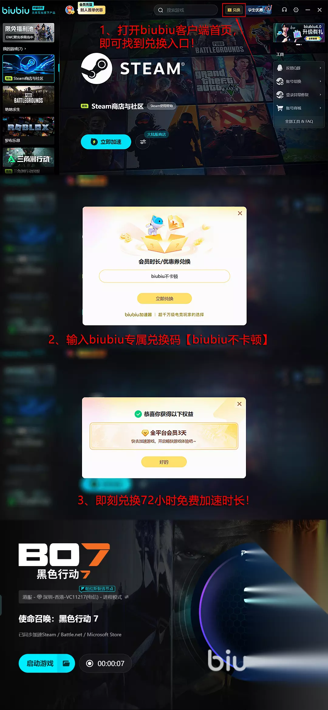 部分玩家在游玩使命召唤黑色行动7时会出现卡顿问题,尤其是联机对战时,可能直接卡在原地无法移动,不仅影响自身体验,还会拖累队友的进攻节奏,这类问题多由网络波动或延迟过高导致。此时可使用biubiu加速器进行全面加速,新人注册后能获得24小时免费加速时长,有效改善网络稳定性,让玩家与队友形成更紧密的配合;新老用户使用兑换码【biubiu不卡顿】,还可额外领取3天免费使用权,保障持续流畅的联机体验。