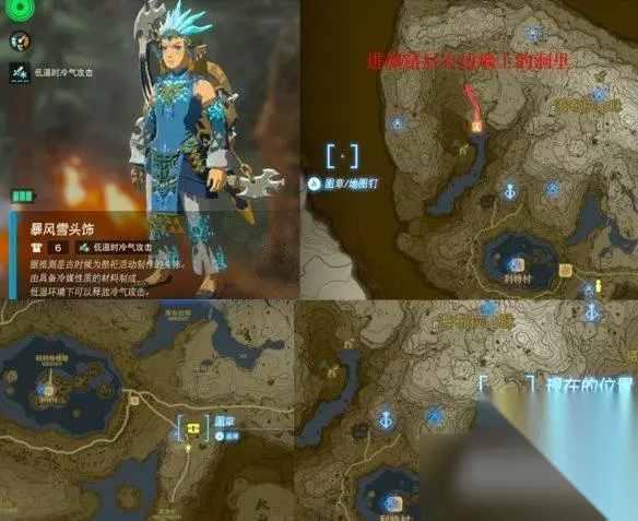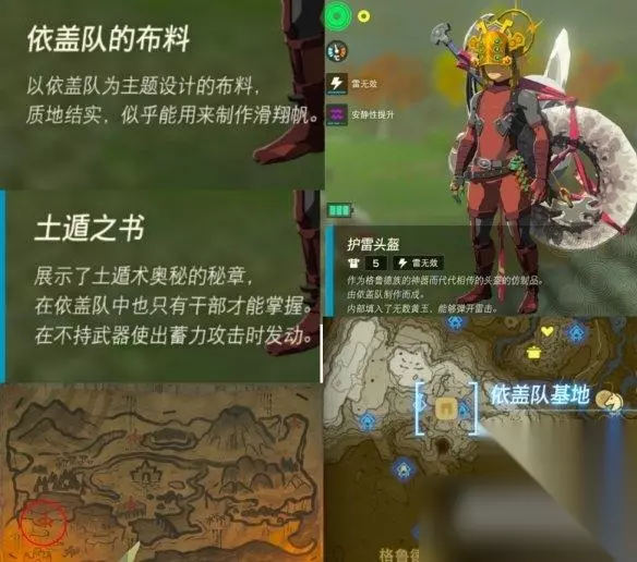 护雷头盔&土遁术: 拿完依盖套后可以在墙上看到地图,标注了地上四个基地的位置,如果你在地下探索过依盖队看过日志的话,上面会写在格鲁德峡谷参加考试。 穿上依盖套去最后一个基地完成三次训练,分别获得布料、土遁术、护雷头盔。