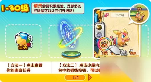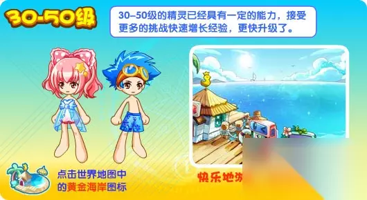 二、1-30级精灵快速升级 精灵们需要积攒经验,当他们的经验值足够高时,就可以进行升级了! 通过完成奥奇任务,去黄金海岸游泳,或者在小屋中进行精灵训练,都可以获取大量的经验值。