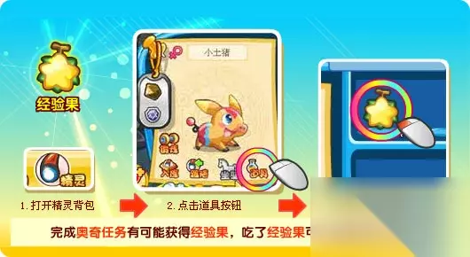 完成奥奇任务有可能获得经验果,吃了经验果可以迅速增加经验。