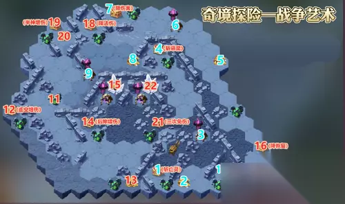 1、到1的位置,选择10秒后斩杀亡灵的遗物。 2、到2的位置,消灭沿途怪物阵营,获取奖励。 3、到3的位置,消灭BOSS阵营。 4、到4的位置,消灭沿途怪物阵营,选择10秒后斩杀恶魔的遗物。 5、到5的位置,直接获取奖励。 6、到6的位置,消灭BOSS阵营。 7、到7的位置,消灭沿途怪物阵营,选择降敌方伤害的遗物。 8、到8的位置,直接获取奖励。 9、到9的位置,消灭BOSS阵营。 10、到10的位置,消灭沿途怪物阵营,选择禁虚空必杀的遗物。 11、到11的位置,消灭怪物阵营。 12、到12的位置,消灭沿路怪物阵营,选择增加对虚空伤害的遗物。 13、到13的位置,消灭沿路怪物阵营,获取奖励。 14、到14的位置,消灭沿路怪物阵营,选择增加对后排伤害的遗物。 15、到15的位置,消灭沿路BOSS,获取奖励。 16、到16的位置,消灭沿路怪物阵营,选择降低敌方恢复的遗物。 17、到17的位置,直接获取奖励。 18、到18的位置,消灭沿路怪物阵营,选择降低敌方法师伤害的遗物。 19、到19的位置,消灭沿路怪物阵营,选择增加对半神伤害的遗物。 20、到20的位置,直接获取奖励。 21、到21的位置,消灭沿路怪物阵营,选择前3次机会免伤的遗物。 22、到22的位置,消灭最终BOSS,获取最终奖励。 boss打法: 1、打boss前建议存满能量,可留一两关怪物最后打(关闭自动放技能),用来存能量及回血。 2、打boss时可以把光环助手的倍速调慢点,见势不妙重新来。 3、可以提前向好友或公会的大佬借佣兵,推荐使用骨傲天阵容。