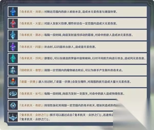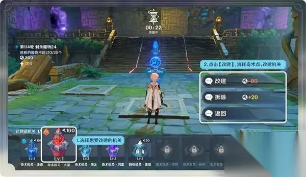 建造机关需要消耗奇术点。棋局初始会为旅行者们提供一定数量的奇术点,此外,还可以通过打倒关卡内的魔物或选择棋阵玄术获得奇术点。 拆除已经建造好的机关会返还部分奇术点。旅行者们也可以消耗部分奇术点来改建已经建造好的奇术机关。
